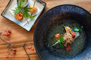 【冷前菜】マリネサーモンと柿のコンポジション キャビア添え